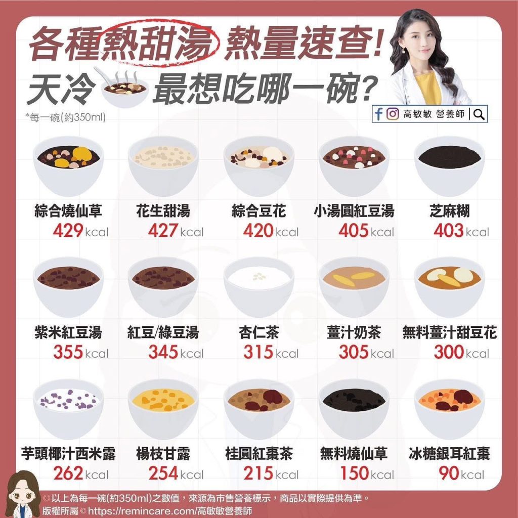 👩🏻⚕️奉上 #各種熱甜湯 #熱量圖鑑